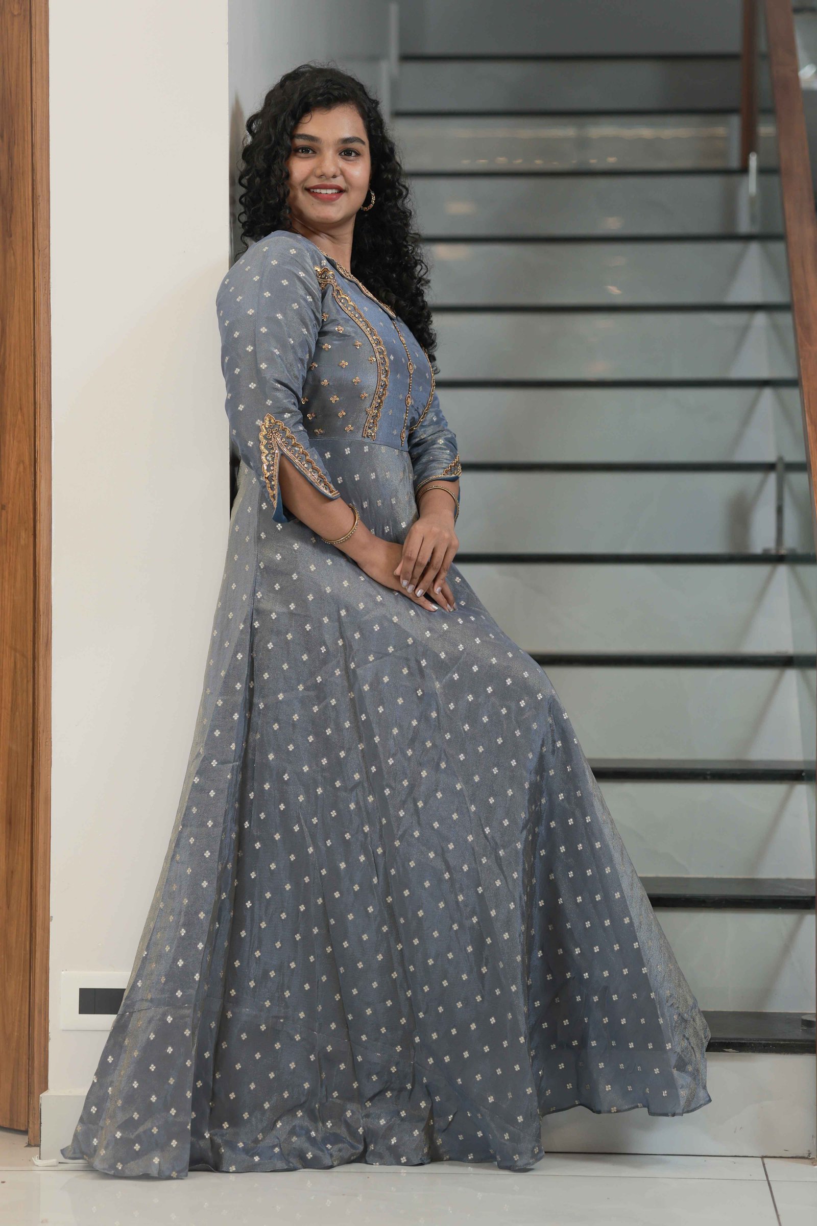 Party Wear Gown - Tissue Shimmer - Ash - Hand Work - Size (S,L,XL,XXL,XXXL) ₹ 3,699.00