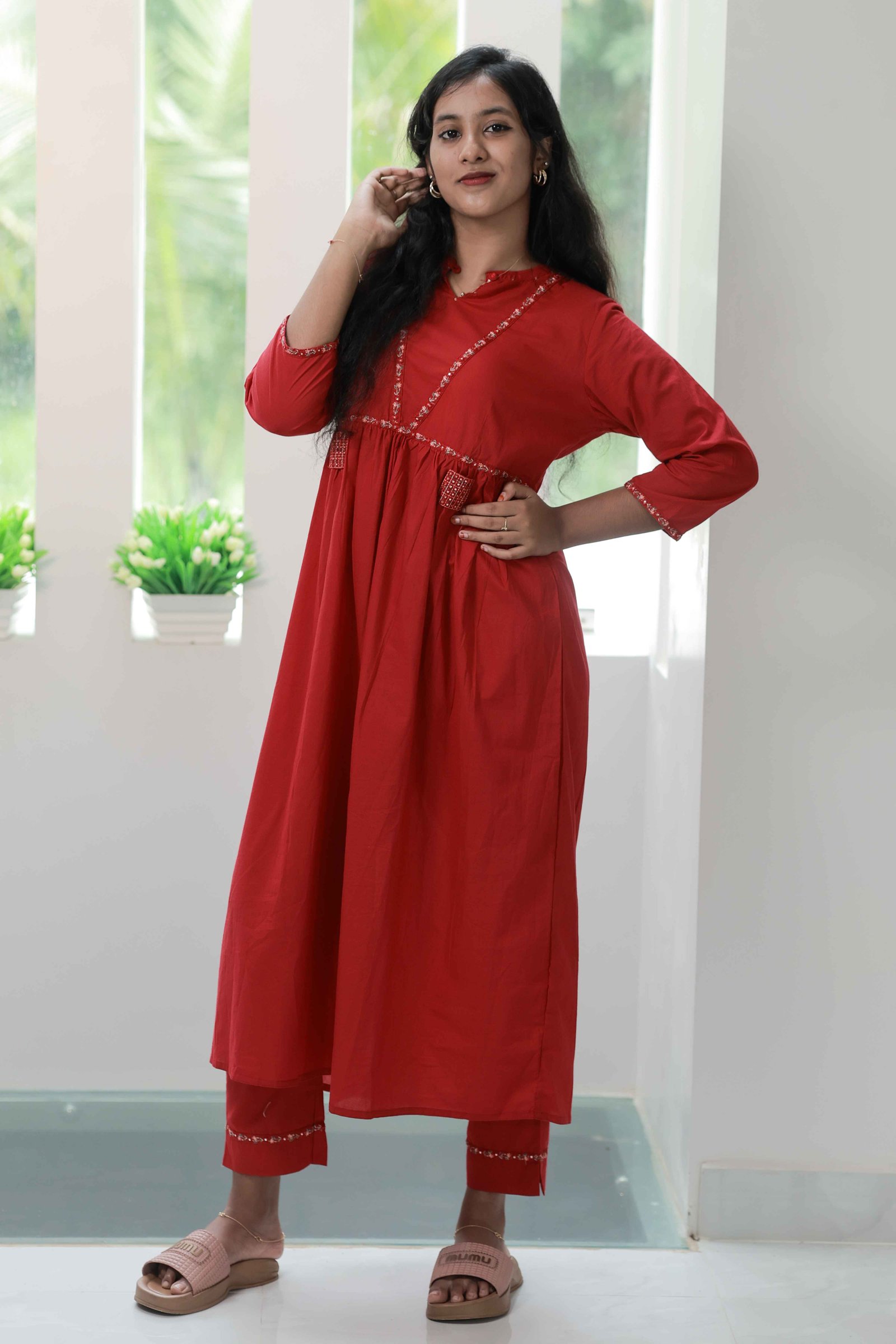 Co-ord set Fabric - Shinon - Red - (M, L, XL, XXL, XXXL) ₹ 1,699.00
