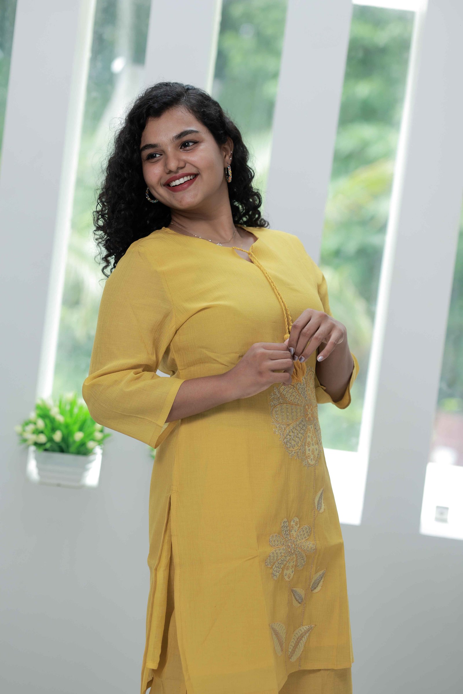 Co-ord set Fabric - Chinon - Mustard Yellow - Embroidery (M, L, XL, XXL) ₹ 1,399.00